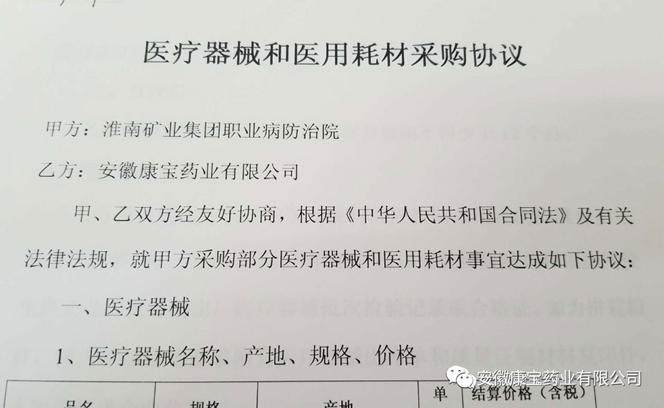 8月23日,康寶藥業(yè)與淮南礦業(yè)(集團(tuán))職業(yè)病防治院簽訂醫(yī)用耗材采購協(xié)議。
