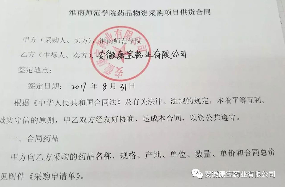 8月31日,康寶藥業(yè)從數(shù)十家公司中脫穎而出,成功中標(biāo)成為淮南師范學(xué)院醫(yī)療用品供應(yīng)商。